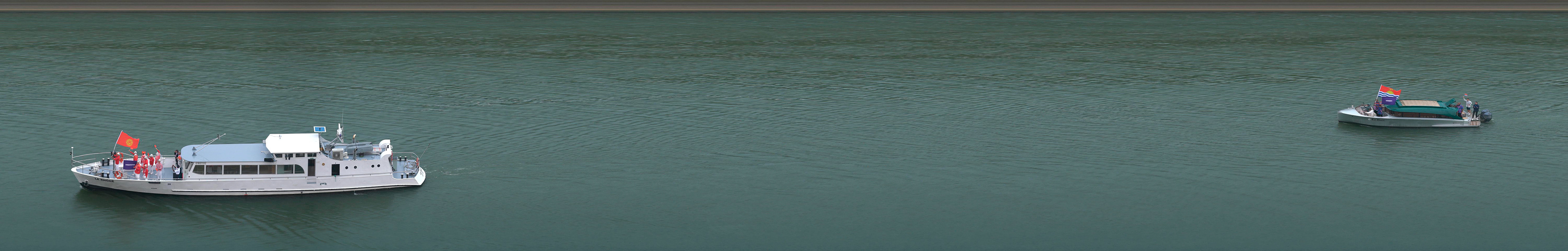 Photographie panoramique de l’entièreté des athlètes et des bateaux à travers la cérémonie d’ouverture des Jeux Olympiques de Paris.